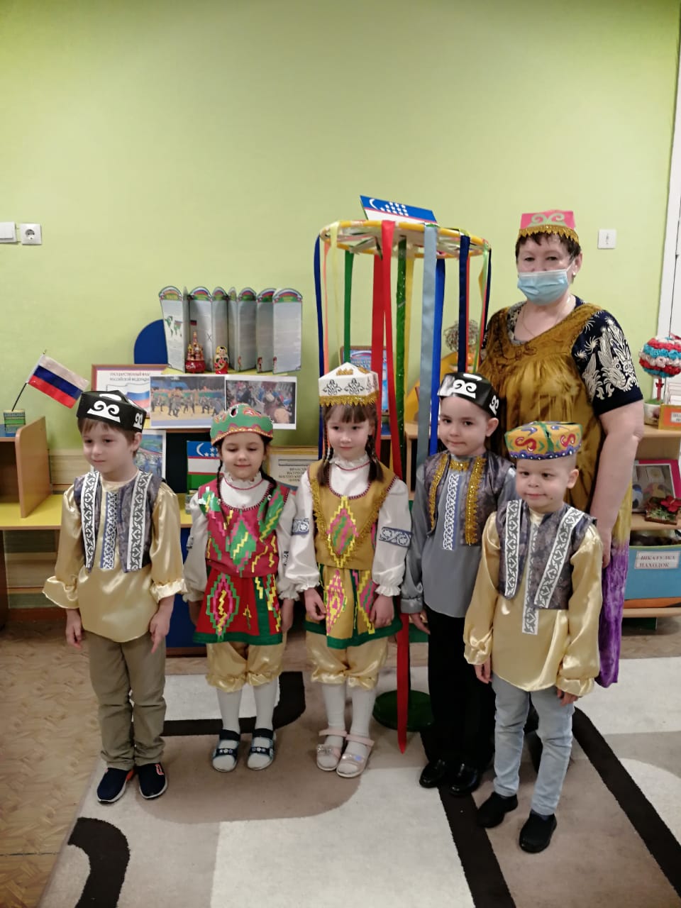 Ребята совершили увлекательное путешествие в мир этнокультуры Узбекистана: познакомились с традициями народа, с народно - прикладным искусством. Дети с удовольствием играли в народные игры: «Ловкие всадники», «Карусель дружбы». Воспитанники старшей группы представили Русскую культуру.