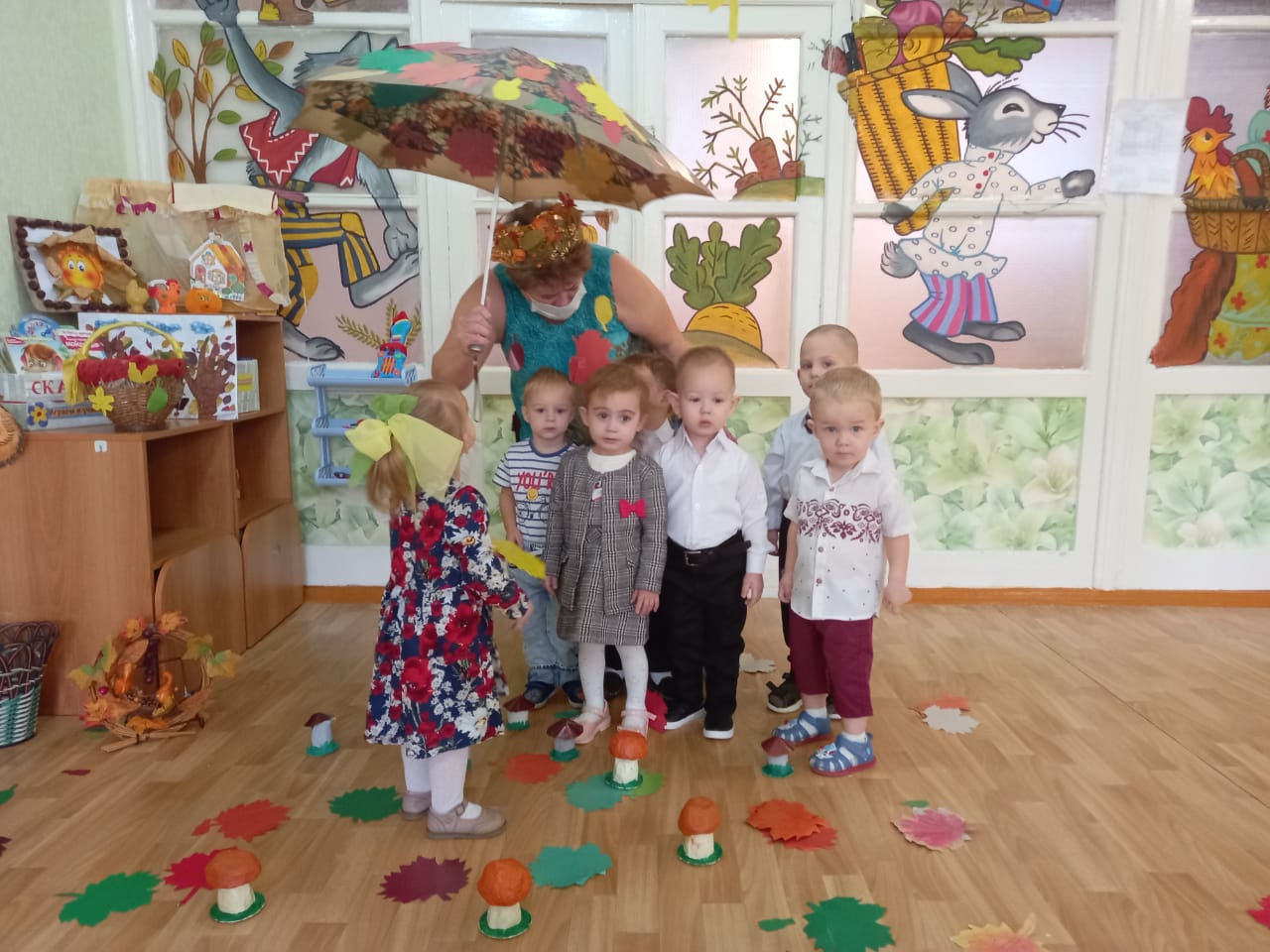 В нашем детском саду с целью воспитания любви к окружающему миру, природе, всему прекрасному; развития способности общаться в коллективе, играть и веселиться сообща; умения проявлять дружеские чувства; развить творческие способности в это время года традиционно проходят развлечения. Дети очень любят эти мероприятия и с удовольствием принимают участие в различных сценках, постановках и конкурсах. Красавица Осень заглянула в каждую группу: и к большим и к маленьким, никого не оставила без внимания. А дети встречали её как дорогую гостью – с песнями, танцами, сказками, играми, шутками да прибаутками!