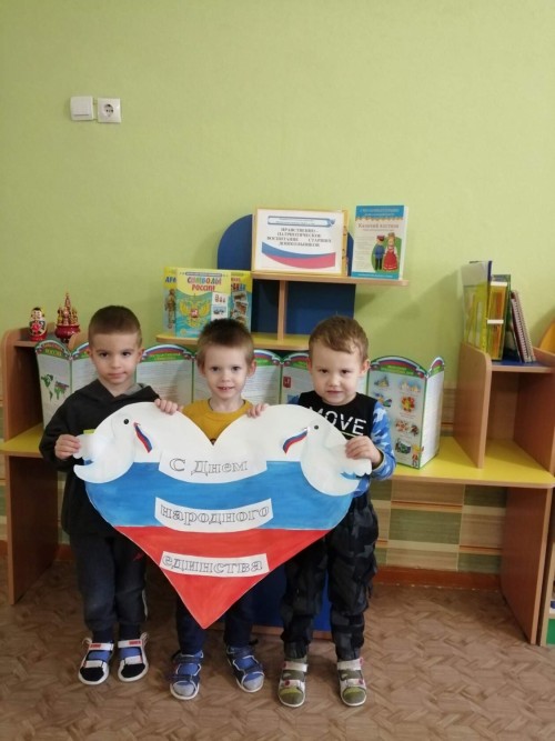 В группе « Золотой петушок » была проведена образовательная деятельность на тему, посвященную празднику «День народного единства».