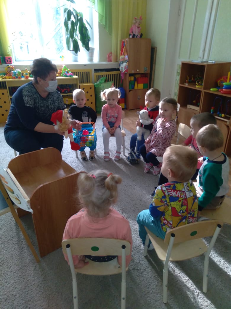 А недавно к детям пришла кукла Маша и принесла им «овощи и фрукты»-целую корзину. Дети узнали, что овощи и фрукты собирают осенью. Яблоки и груши растут на деревьях, бывают красные, желтые, зелёные. Фрукты бывают твёрдые и мягкие. По вкусу бывают сладкими и кислыми.