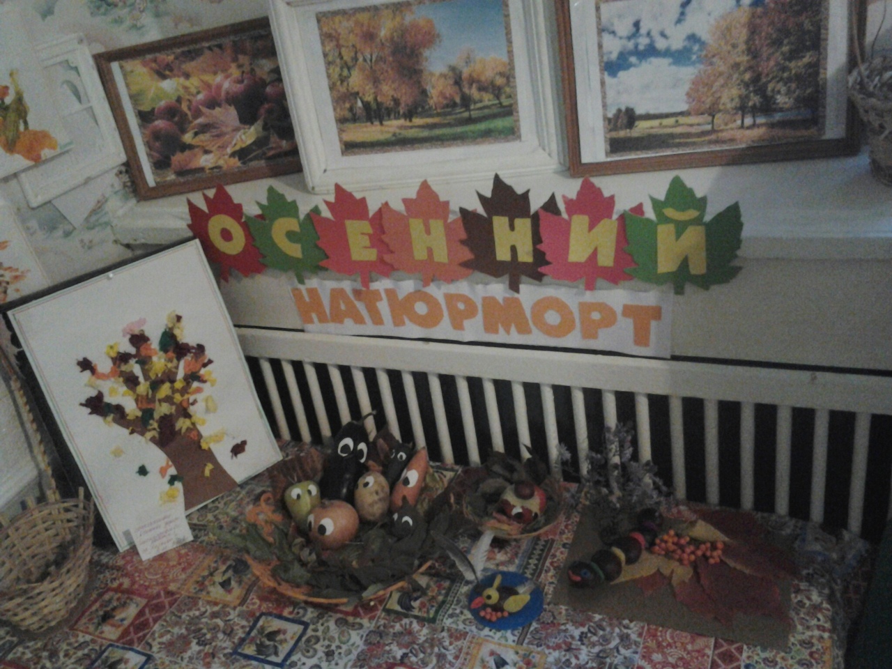 Традиционно осенью в детском саду проходят мероприятия посвященные чарующему времени года-осени. В 1 мл. группе «Колобок» в течении октября была проведена акция «Осень золотая снова к нам пришла» Цель которой –дать представление о природных изменениях с наступлением этой поры. Воспитывать любовь к красоте природы. Каждый год все люди благодарны осени за богатый урожай и неимоверную красоту. На прогулках дети открывали для себя мир природы. Получали знания о деревьях, кустарниках, цветах, животных в лесу и птицах. Ребята вместе собирали природный материал для коллективного творчества. Использовались игровые приемы: «Кто быстрее найдет рябину» ,Каштаны для Белочки», »У кого больше красивых листьев». Итогом . акции стала выставка «Осенний натюрморт». Дети учились работать в команде, распределять работу, составлять композиции.