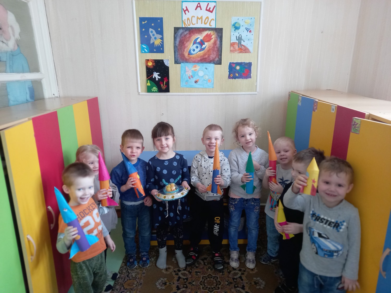12 апреля во 2 младшей группе «Ромашка» прошел тематический день, посвященный Дню космонавтики. Для расширения кругозора в группе были использованы иллюстрации о планетах, космонавтах спутниках, созвездиях. В беседе дети узнали о человеке, покорившем космическое пространство. Также в группе оформлена выставка детских работ «Наш космос».