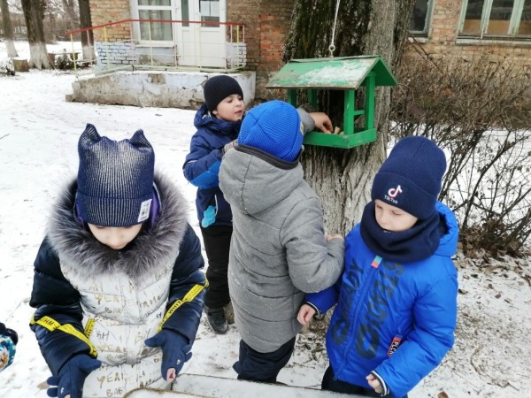 Вместе с ребятами подкармливали птиц хлебными крошками, зерном, утепляли корни деревьев снегом, воспитывая в детях заботу о природе.