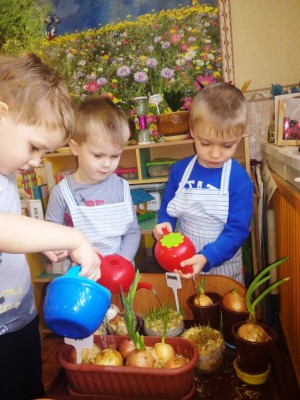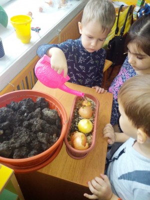Теперь у детей есть забота об огороде – полить, опрыскать. Ждём с нетерпением результатов от всходов тюльпанов.