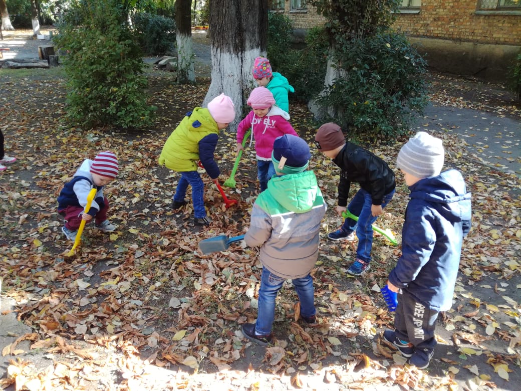 На клумбе собирали вызревшие семена тагетиса, для посадки весной. А еще осенью хорошо работать на свежем воздухе! Ребята с удовольствием сгребают опавшую листву.