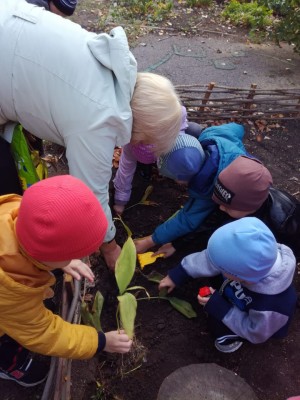 Золотая осень в самом разгаре. Ребята группы «Золотая рыбка» очень радуются теплым, солнечным дням. Прекрасное время для наблюдений в природе–желтая березка, красно-оранжевая рябина, резной, желто- коричневый каштан. Но осень еще пора уборки и посадки. Мы с ребятами посадили на экологической тропе – ландыши, растение, занесенное в Красную книгу. Ухаживаем за ними, поливаем.