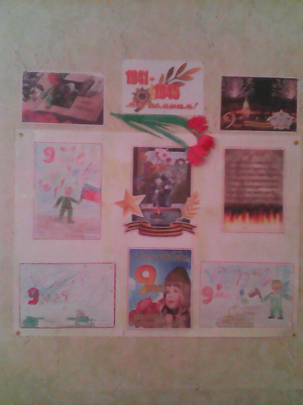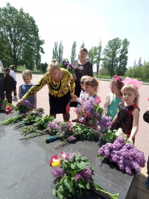Накануне празднования Дня Победы в группах Подсолнушек» и «Золотой петушок» прошло тематическое занятие, посвященное Дню Победы. Ребята с интересом слушали рассказ воспитателя о русских солдатах - героях, освободивших страну и весь мир от немецко-фашистских захватчиков, рассматривали фотографии военных лет, читали стихи, пели военные песни, оформили плакат, посвященный празднику Победы, возложили цветы к памятнику шахтерам.